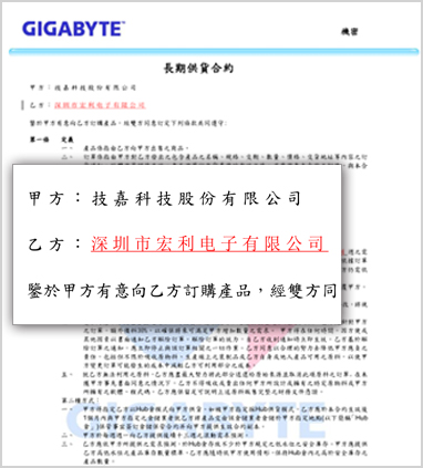 技嘉科技股份有限公司与本公司签订的合作合同方案