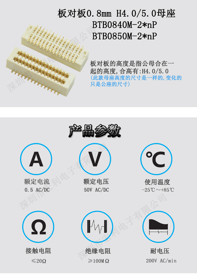 0.5Pitch H4.0-5.0板对板公座